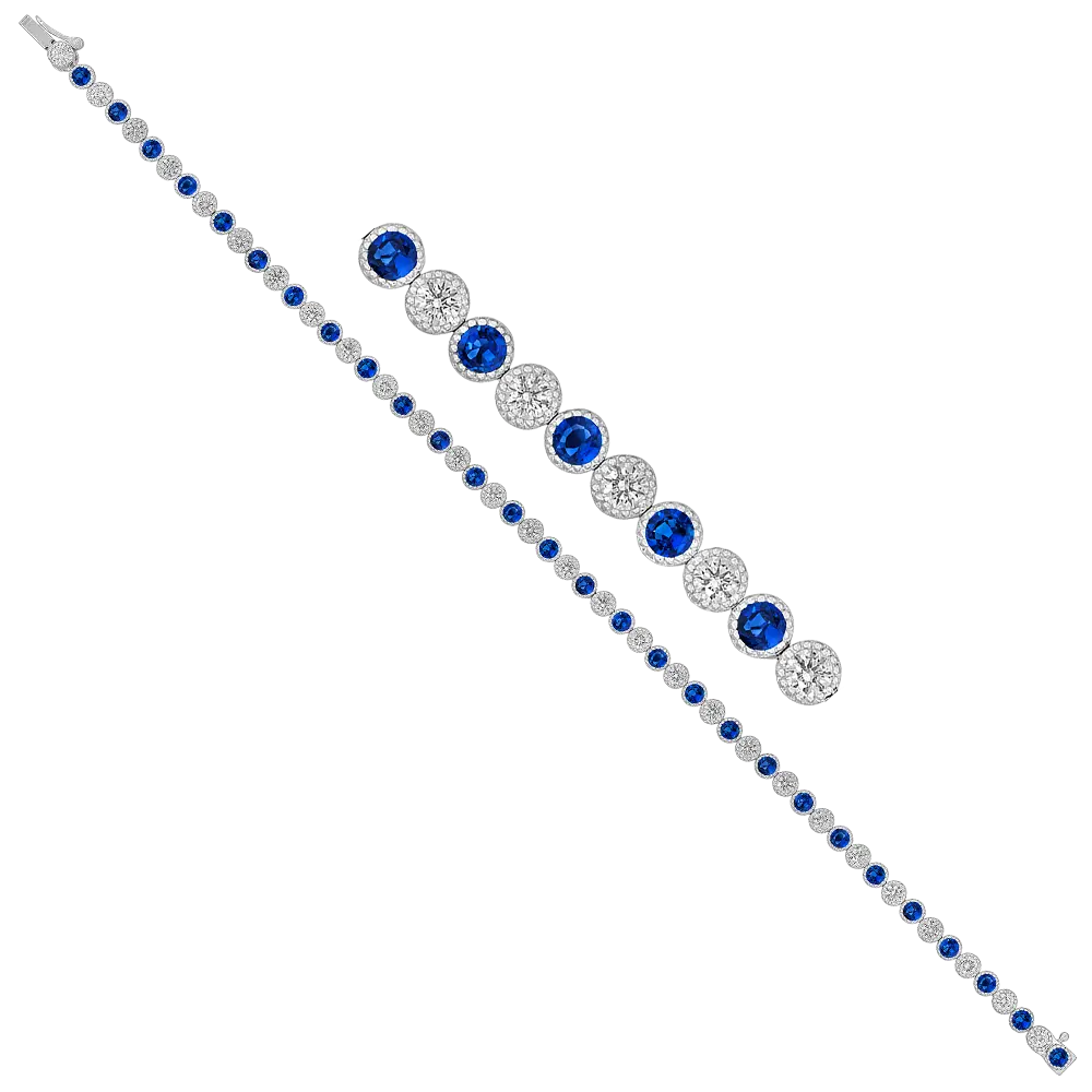 18Kt White Gold Milgrain Tennis Bracelet With (28) Round Sapphires Weighing 1.68ct And (28) Round Diamonds Weighing 1.40ct